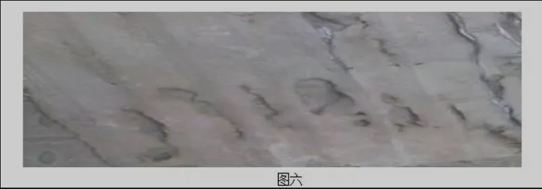 濾袋長803.cm,折徑為:20.08cm;新濾袋長度為811.0-813.5cm,折徑為:20.1-20.3 cm,即濾袋縱向熱縮率為:0.91-1.22%,橫向熱縮率為:0.10-1.08%。整條濾袋破損嚴重,尤其是濾袋上半段。整條濾袋存在多處由內向外磨損大小不一的破洞,破洞處邊沿可見基布;在袋籠橫筋處也存在由內向外磨損的破洞。濾袋多處表面纖維層被磨損,可見基布;凈氣面存在纖維層脫落、縱向裂開。(見圖三、四)